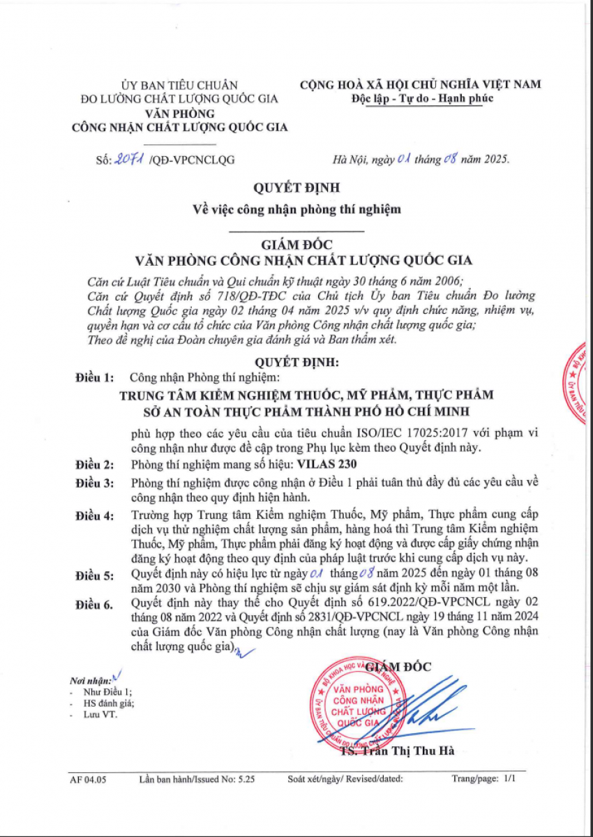 Thông báo Quyết định công nhận phòng thí nghiệm đạt chuẩn ISO/IEC 17025:2017